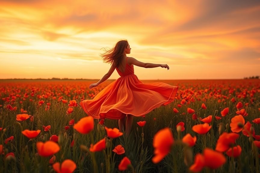 این پرامپت برای ساخت یک تصویر زیبا از دشت آرام با گلهای شقایق و دختری در لباس نارنجی طراحی شده است. در این تصویر، دختری به آرامی میچرخد و حس سرزندگی را منتقل میکند. برای استفاده از این پرامپت، بهترین نتیجه را با مدلهای AI مانند OpenAI خواهید گرفت.