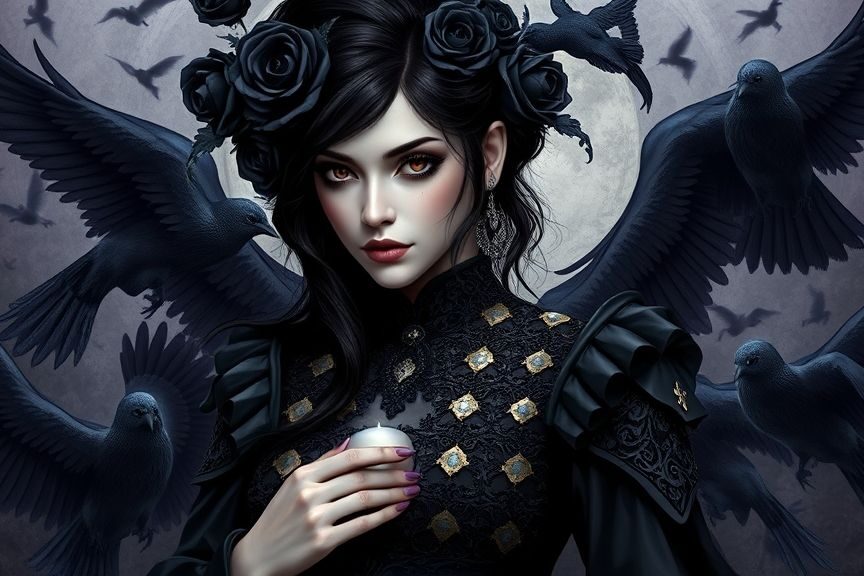 این پرامپت برای ساخت تصویری از زن جوانی که در لباس سیاه با عناصری از هنر گوتیک احاطه شده است طراحی شده است. پیشنهاد میشود از مدلهای معتبر برای به تصویر کشیدن این پرامپت استفاده کنید.